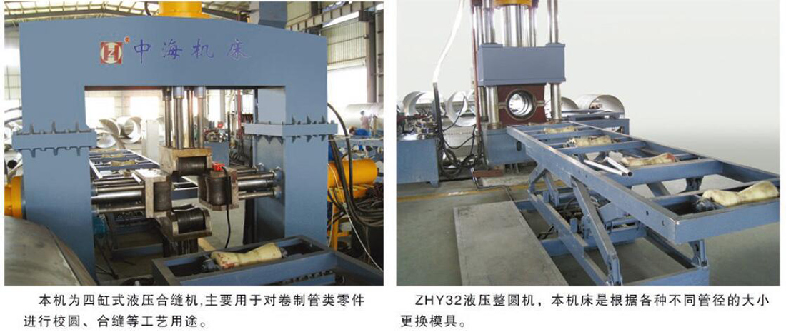 該設備是大口徑直縫埋弧焊管生產(chǎn)線上的五大主機之一,主機由立柱、油缸、滑塊、油箱、橫梁、工作臺、預凸裝置。模具、液壓比例伺服系統(tǒng)、電氣數(shù)控系統(tǒng)組成。主機有3個數(shù)控軸,輔機有5個以上數(shù)控軸。輔機由縱向接料裝置、側擋料機、前后操作機、前后托料架、側出料裝置組成。